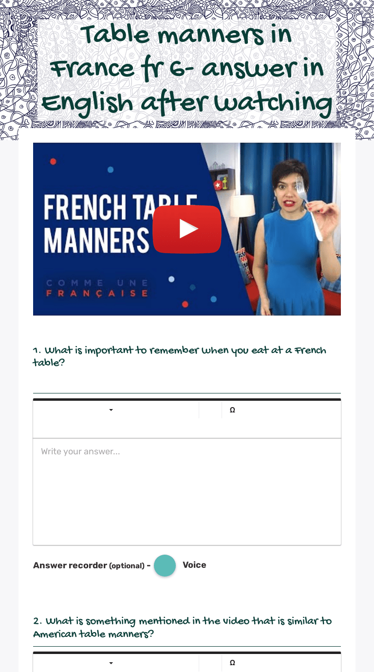 Table Manners Worksheet Answers / Table Manners In France Fr 6 Answer In English After Watching Interactive Worksheet By Clack Julie Wizer Me /. Answer the call as long as you apologize later. Pass the information along to your kids! Table manners are visible sign that you are. It is acceptable to answer your cell phone during a meal. If someone asks you a question while your mouth is full of food, you should.